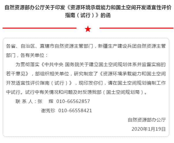 雙評價!自然資源部發布《資源環境承載能力和國土空間開發適宜性評價指南(試行)》